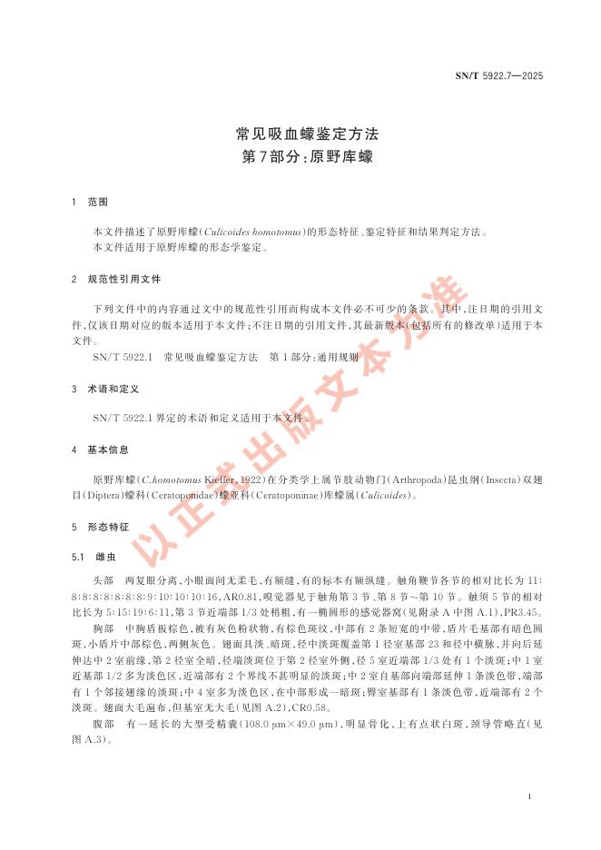 SN/T 5922.7-2025 常见吸血蠓鉴定方法 第7部分:原野库蠓