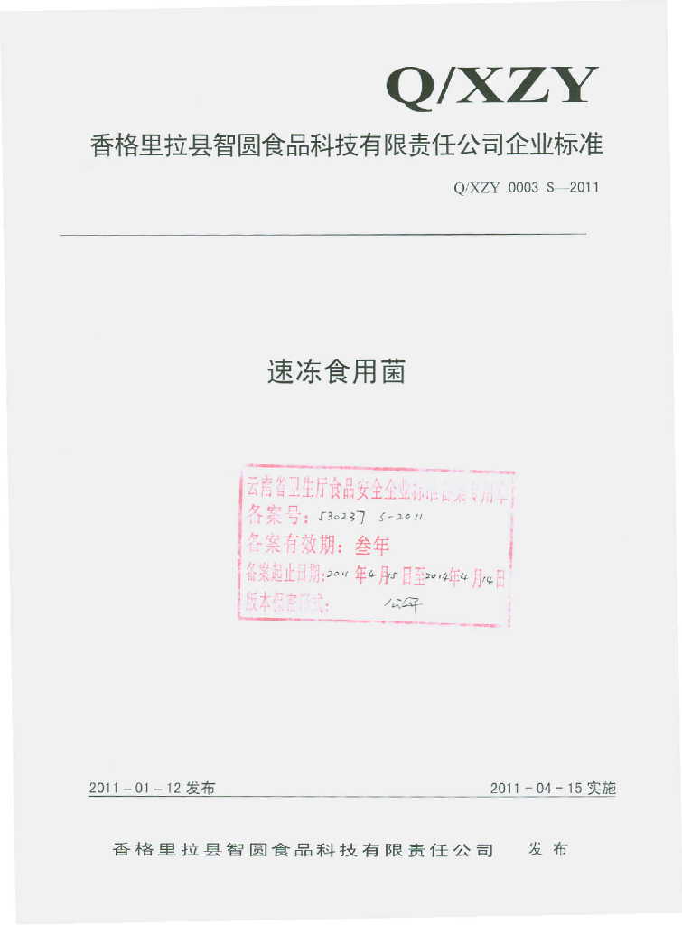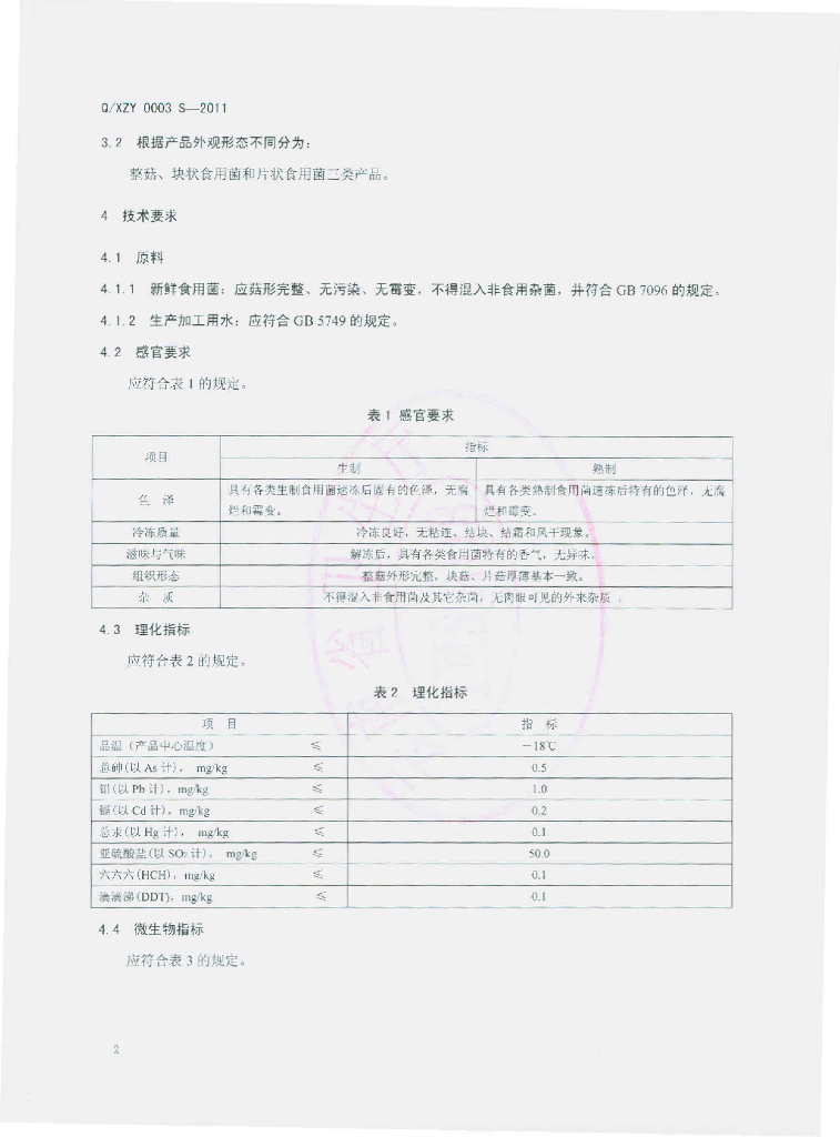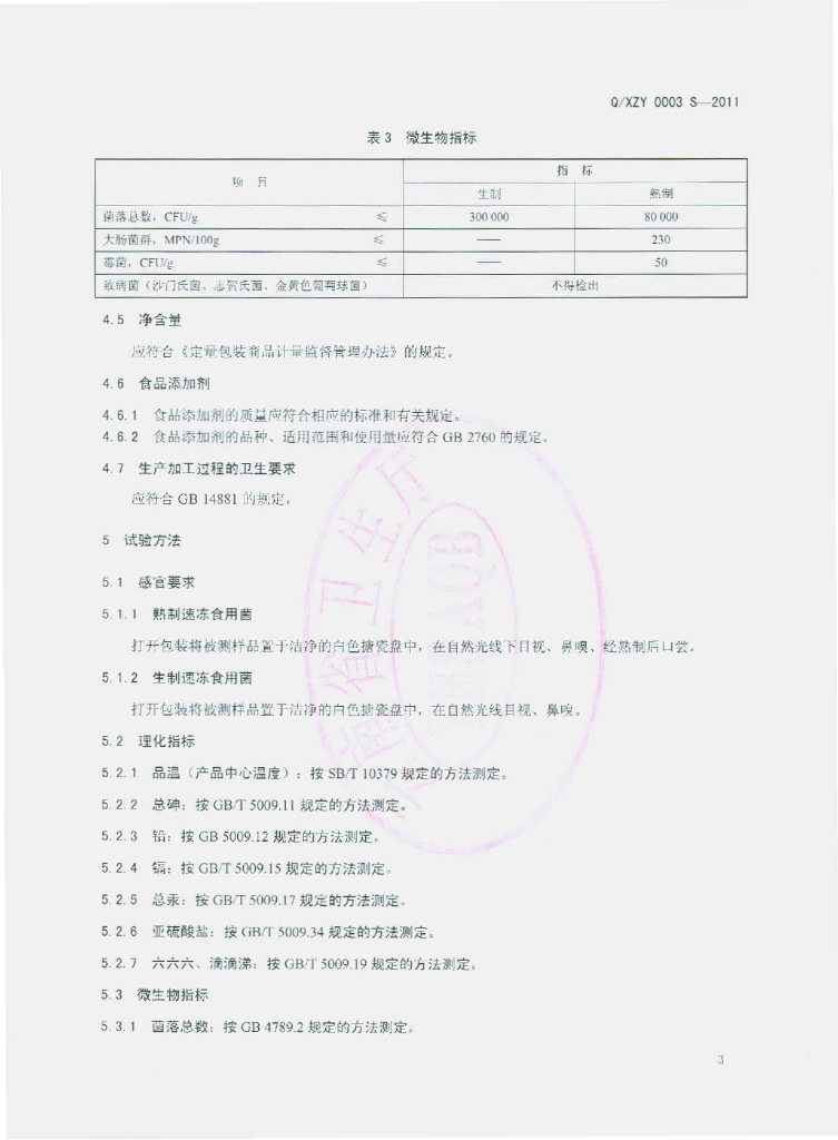 Q/XZY 0003S-2011 速冻食用菌