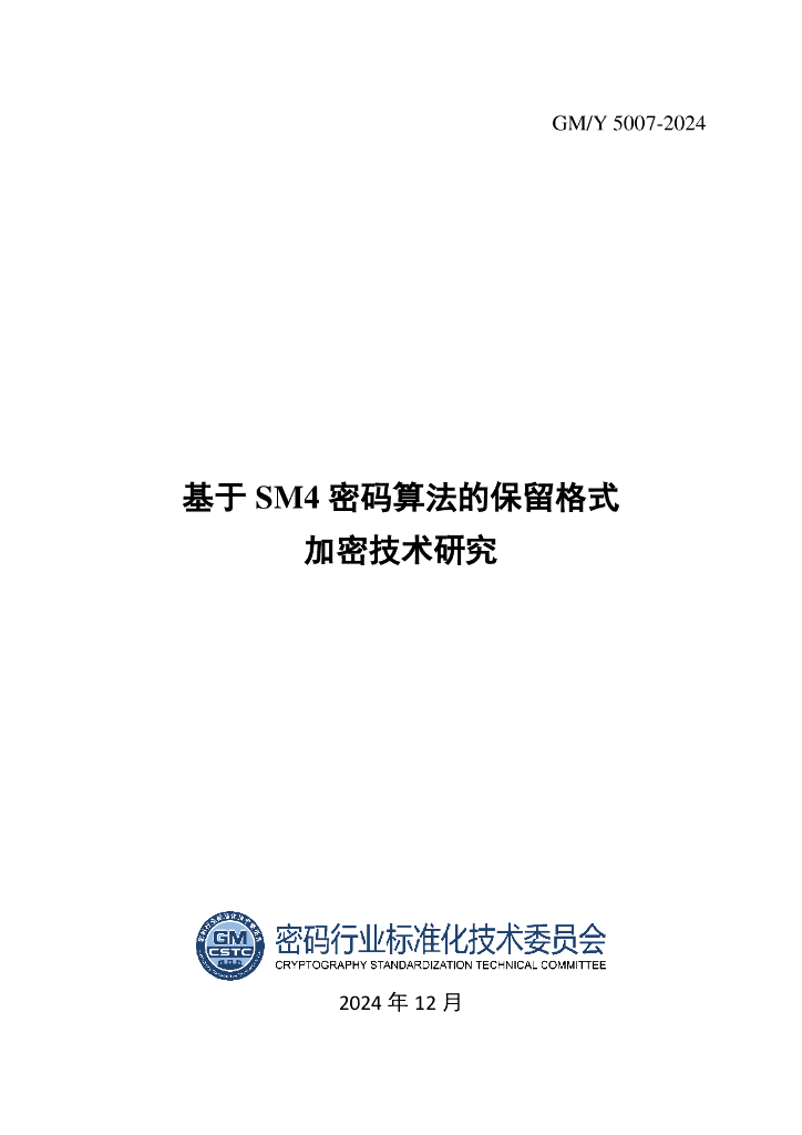 GM/Y 5007-2024 基于SM4密码算法的保留格式加密技术研究