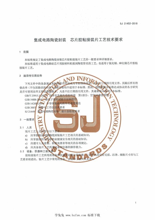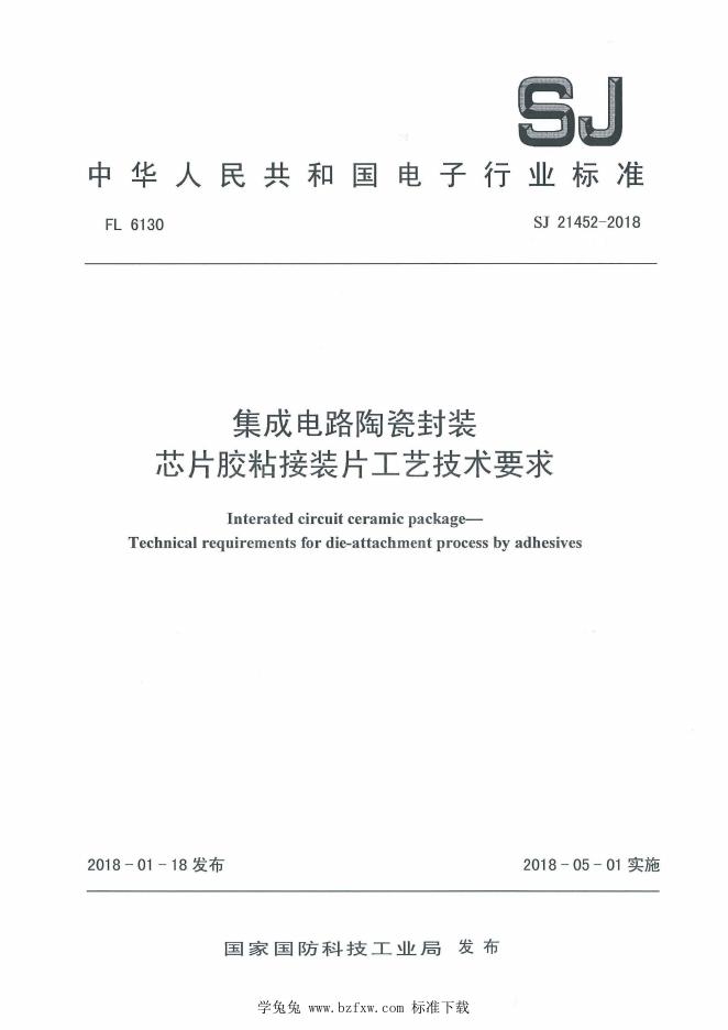 SJ 21452-2018 集成电路陶瓷封装 芯片胶粘接装片工艺技术要求