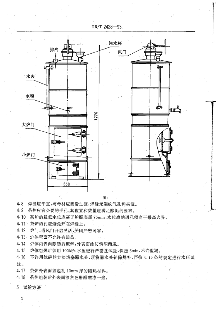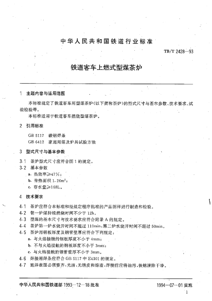 TB/T 2428-1993 铁道客车上燃式型煤茶炉