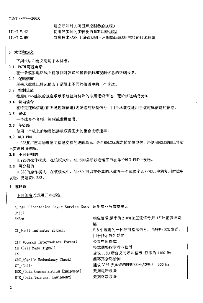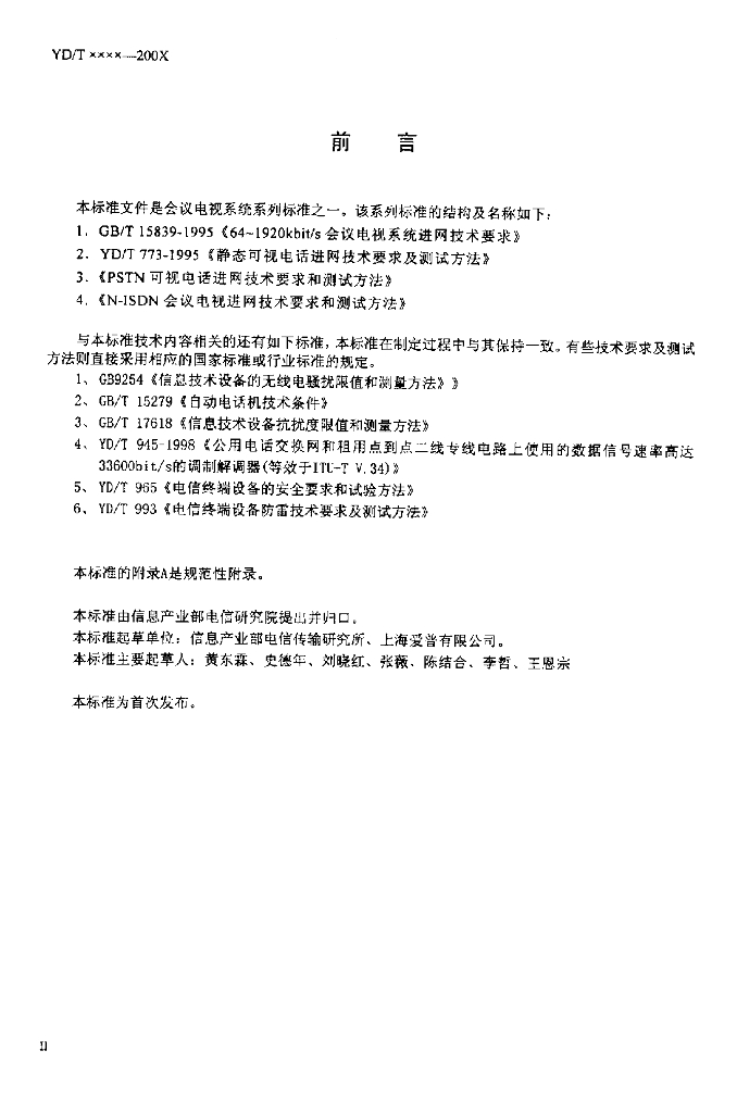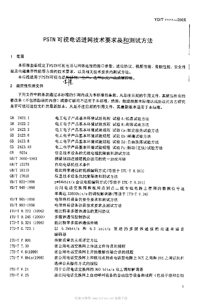 YD/T 1237-2002 PSTN 可视电话进网技术要求及测试方法