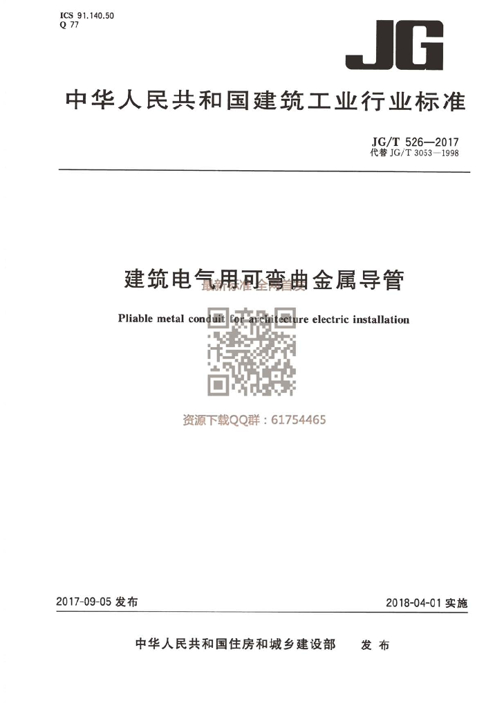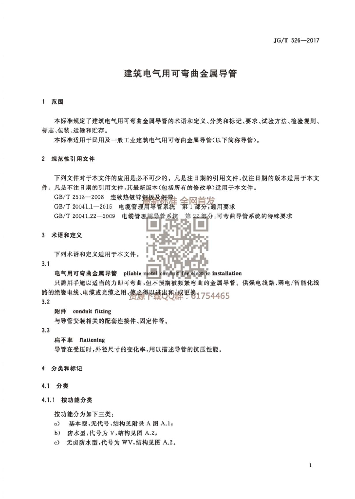 JG/T 526-2017 建筑电气用可弯曲金属导管