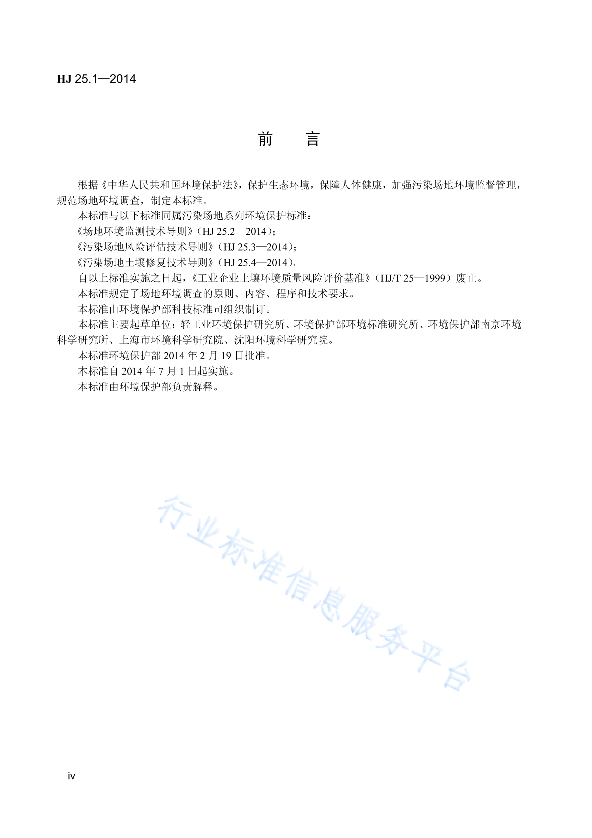 HJ 25.1-2014 场地环境调查技术导则