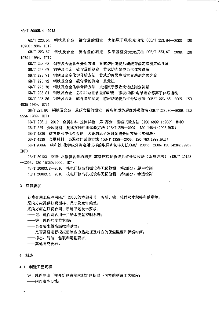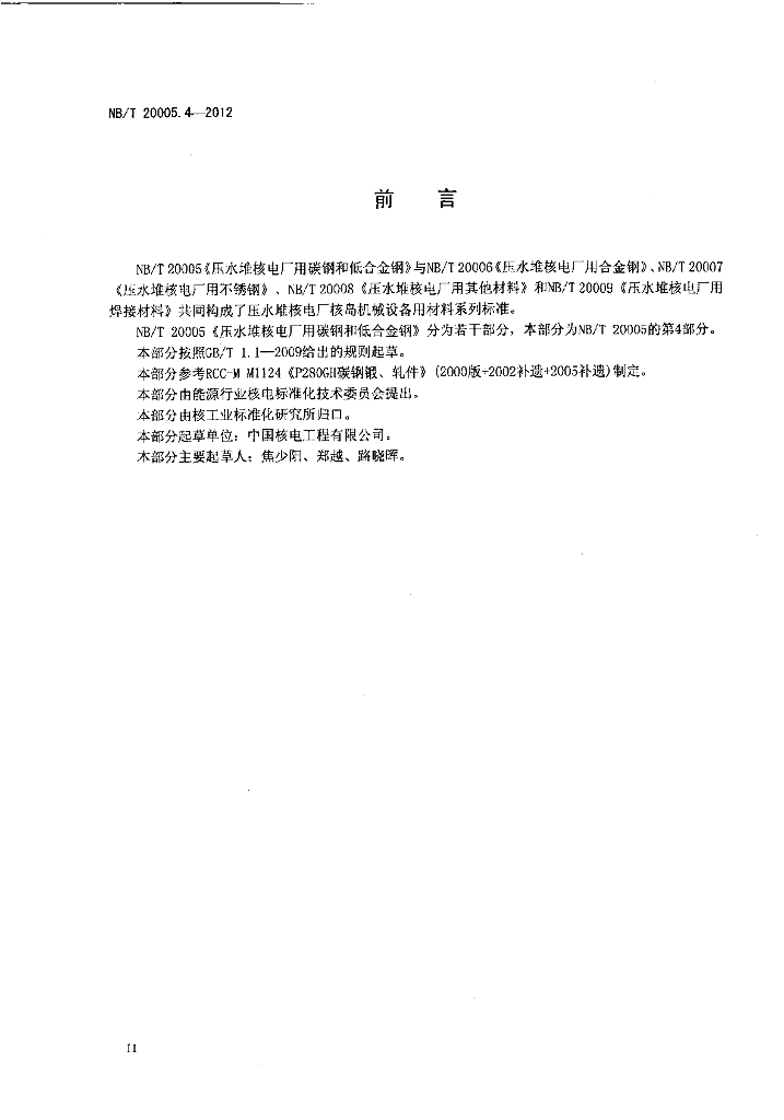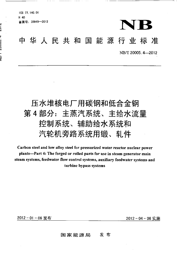 NB/T 20005.4-2012 压水堆核电厂用碳钢和低合金钢 第4部分:主蒸汽系统、主给水流量控制系统、辅助给水系统和汽轮机旁路系统用锻、轧件