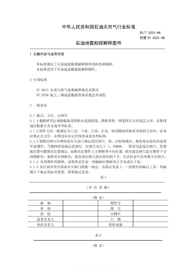 SY/T 5331-1994 石油地震勘探解释图件