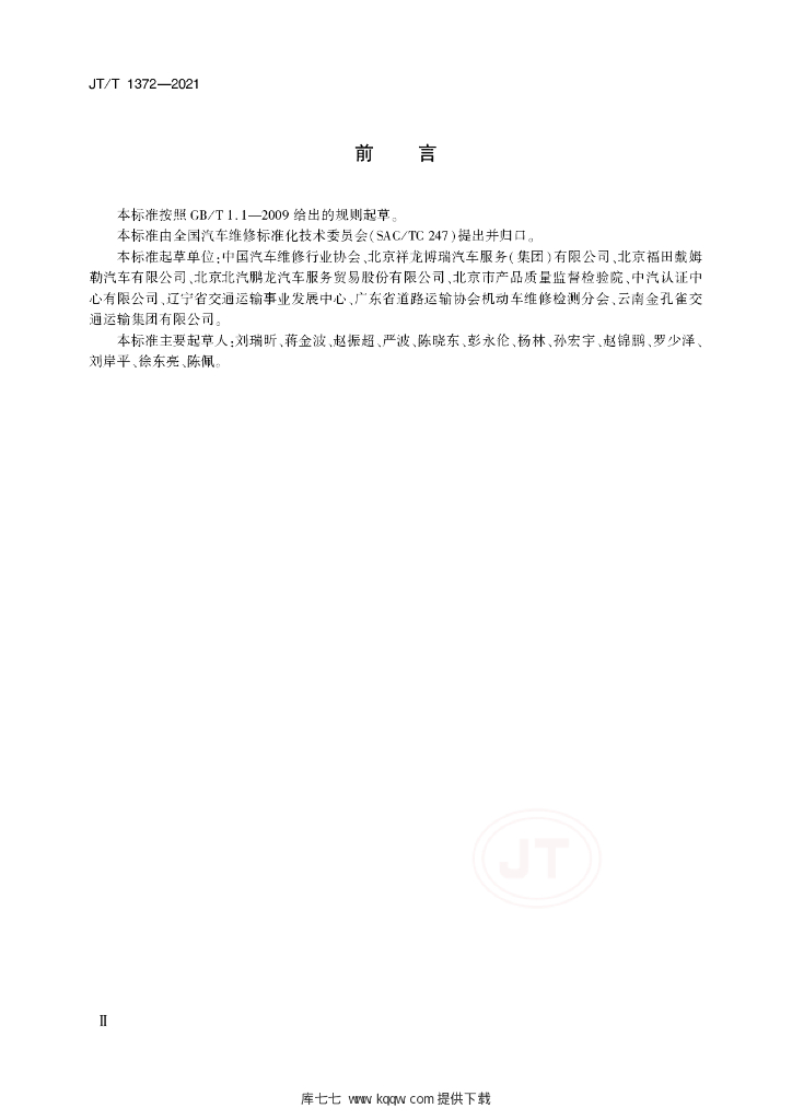 - 提出单位:全国汽车维修标准化技术委员会