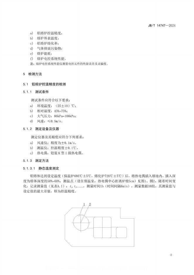 JB/T 14747-2024 压铸铝熔炉 性能检测方法