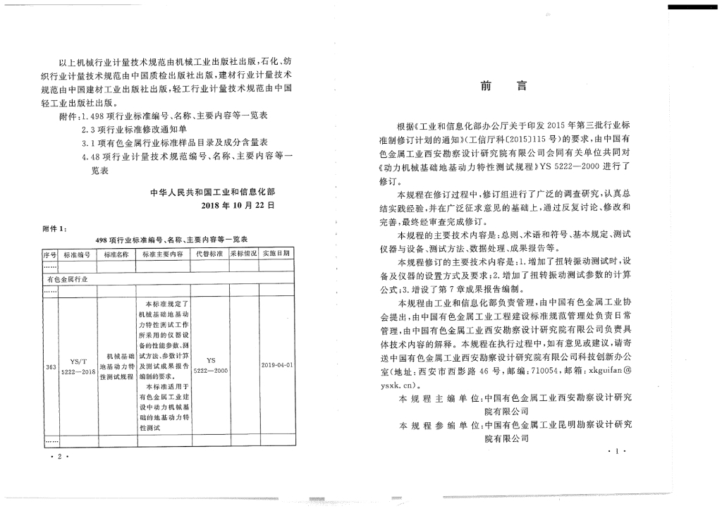 YS/T 5222-2018 机械基础地基动力特性测试规程