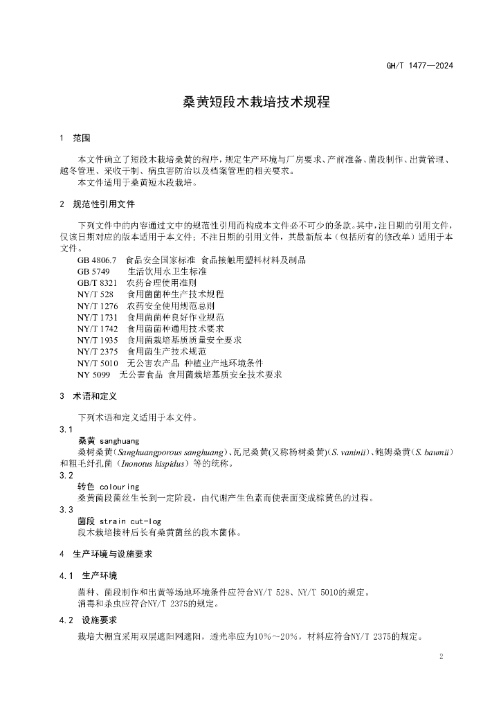 GH/T 1477-2024 桑黄短段木栽培技术规程