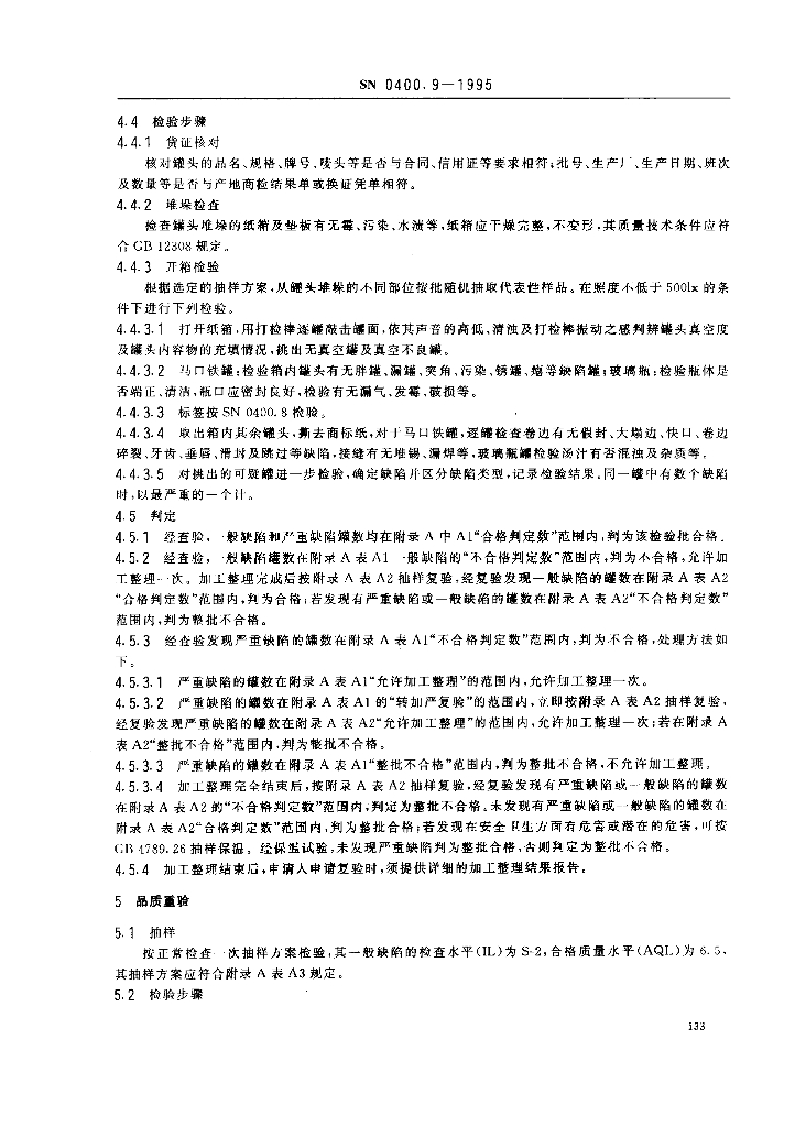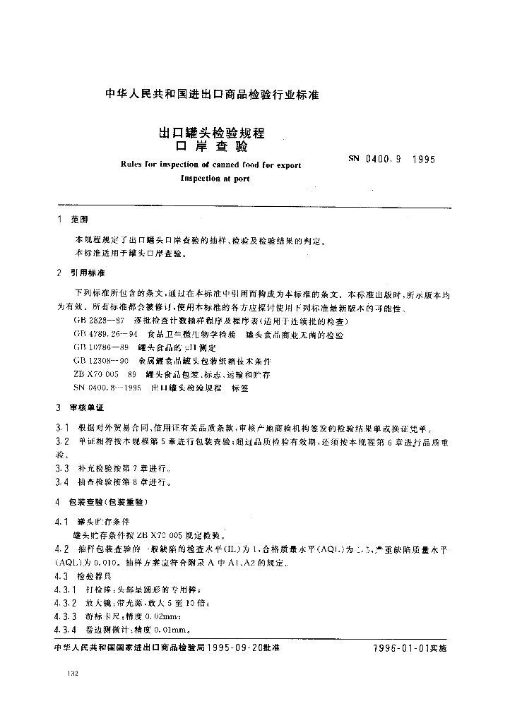 SN 0400.9-1995 出口罐头检验规程 口岸查验