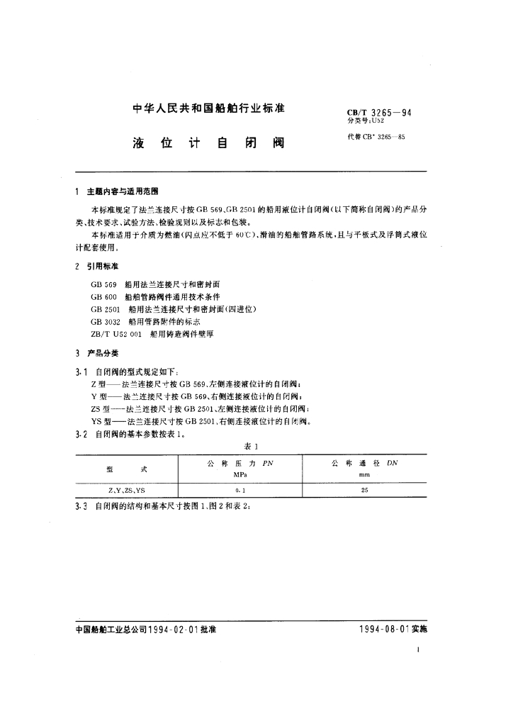 CB/T 3265-1994 液位计自闭阀