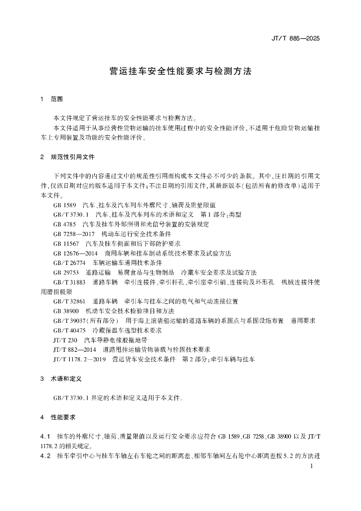 JT/T 885-2025 营运挂车安全性能要求与检测方法