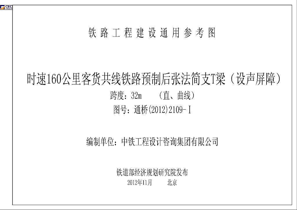 通桥(2012)2109-Ⅰ时速160公里客货共线铁路预制后张法简支T梁(设声屏障)(跨度32m,直、曲线)图集