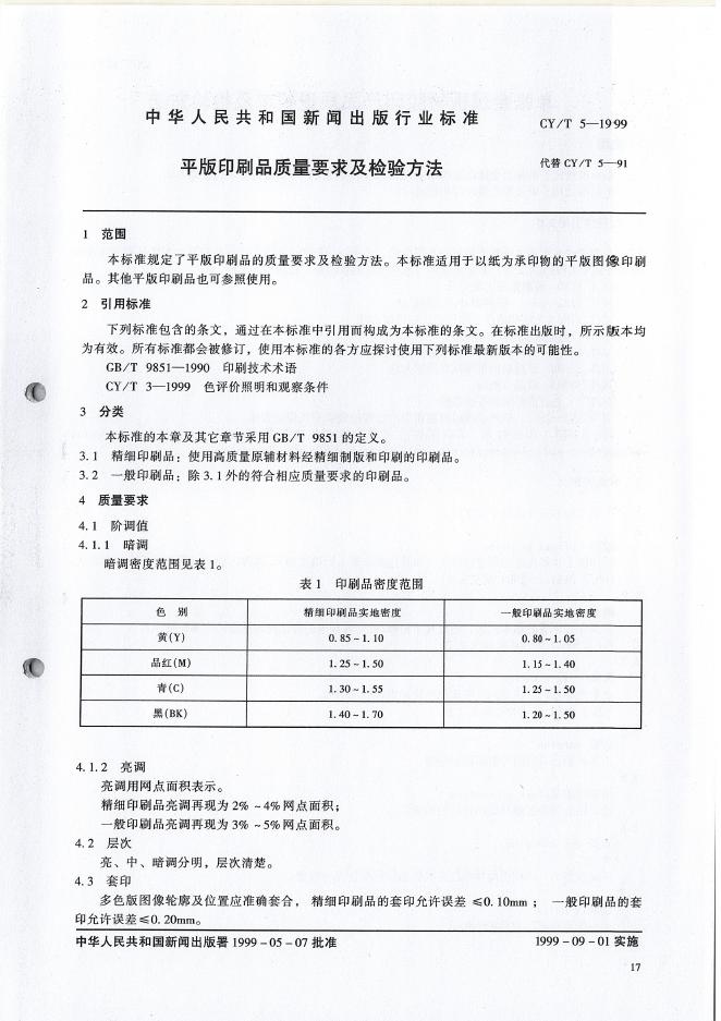 CY/T 5-1999 平版印刷品质量要求及检验方法