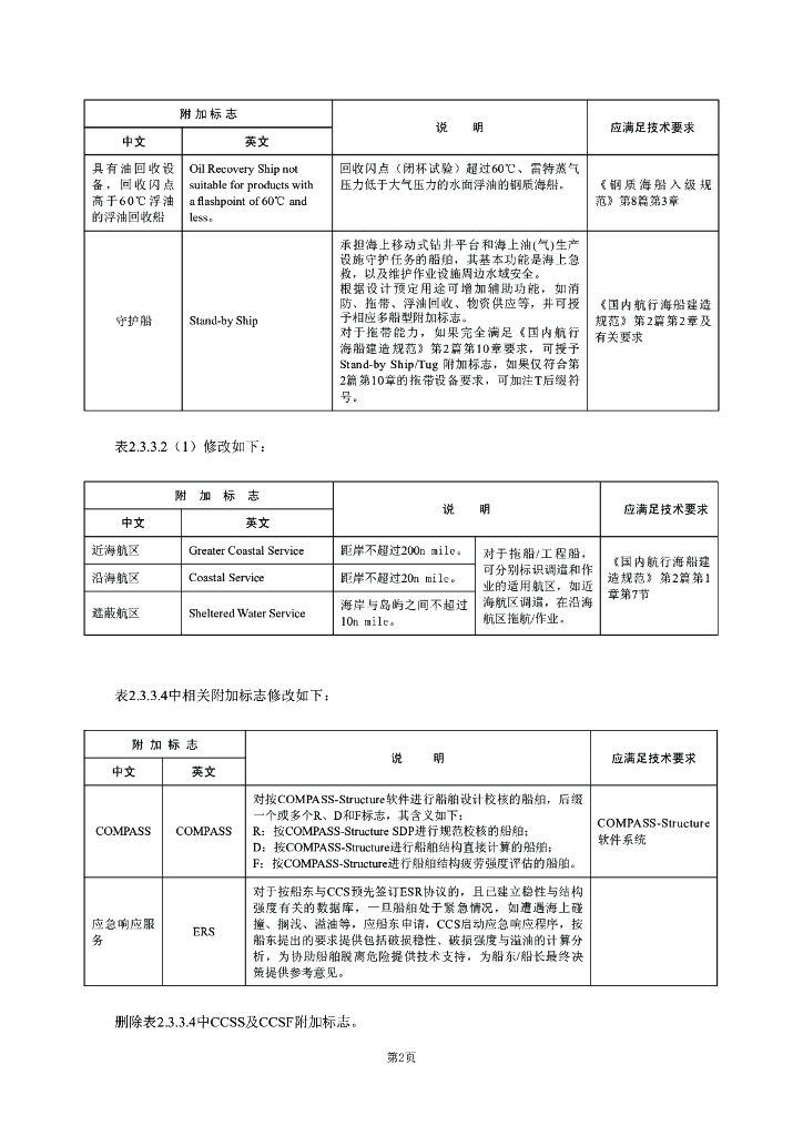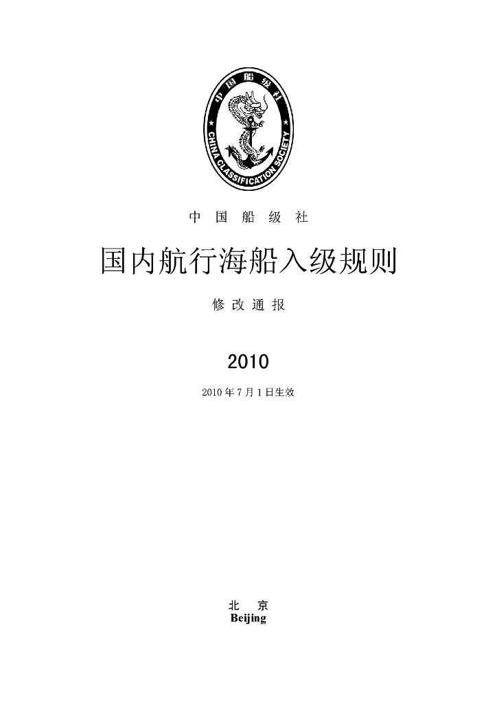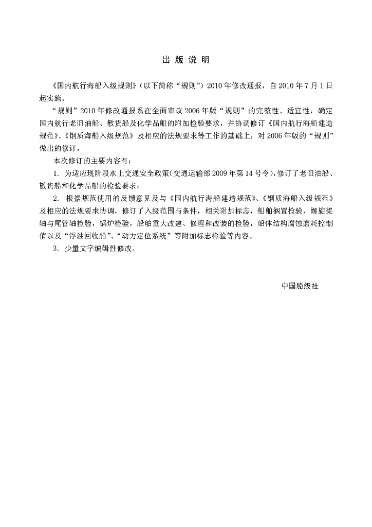 中国船级社CCS:国内航行海船入级规则2010修改通报