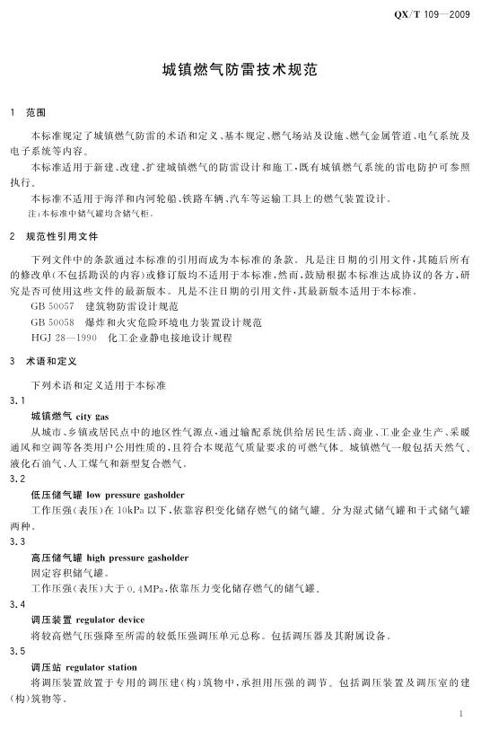 QX/T 109-2009 城镇燃气防雷技术规范