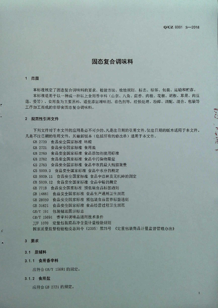 Q/GZ 0001S-2018 固态复合调味料