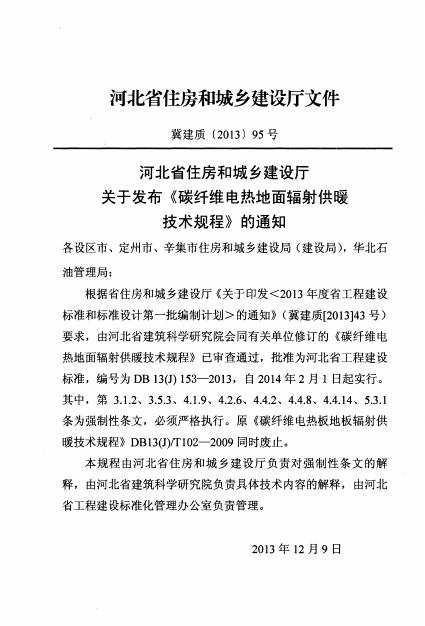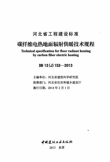 DB13(J)/ 153-2013 碳纤维电热地面辐射供暖技术规程