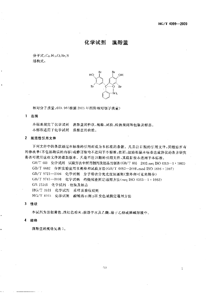 HG/T 4099-2009 化学试剂 溴酚蓝