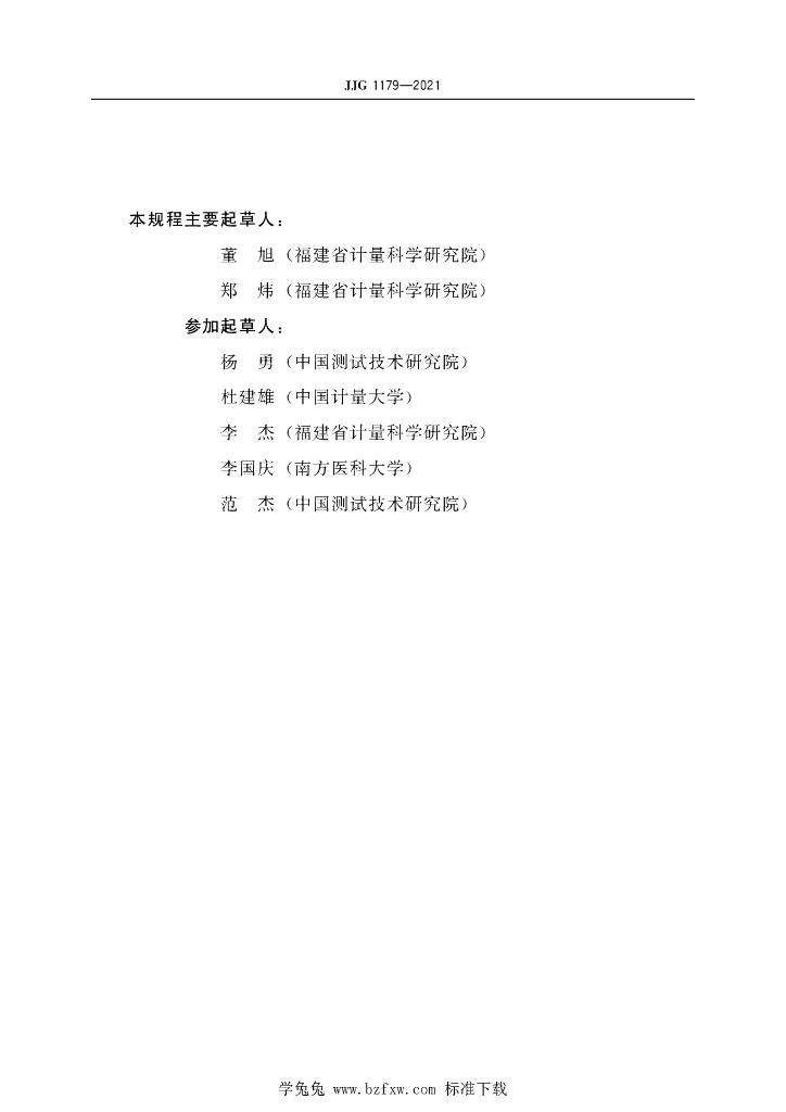 董旭(福建省计量科学研究院)、郑炜(福建省计量科学研究院)、杨勇(中国测试技术研究院)、杜建雄(中国计量大学)、李杰(福建省计量科学研究院)、李国庆(南方医科大学)、范杰(中国测试技术研究院)