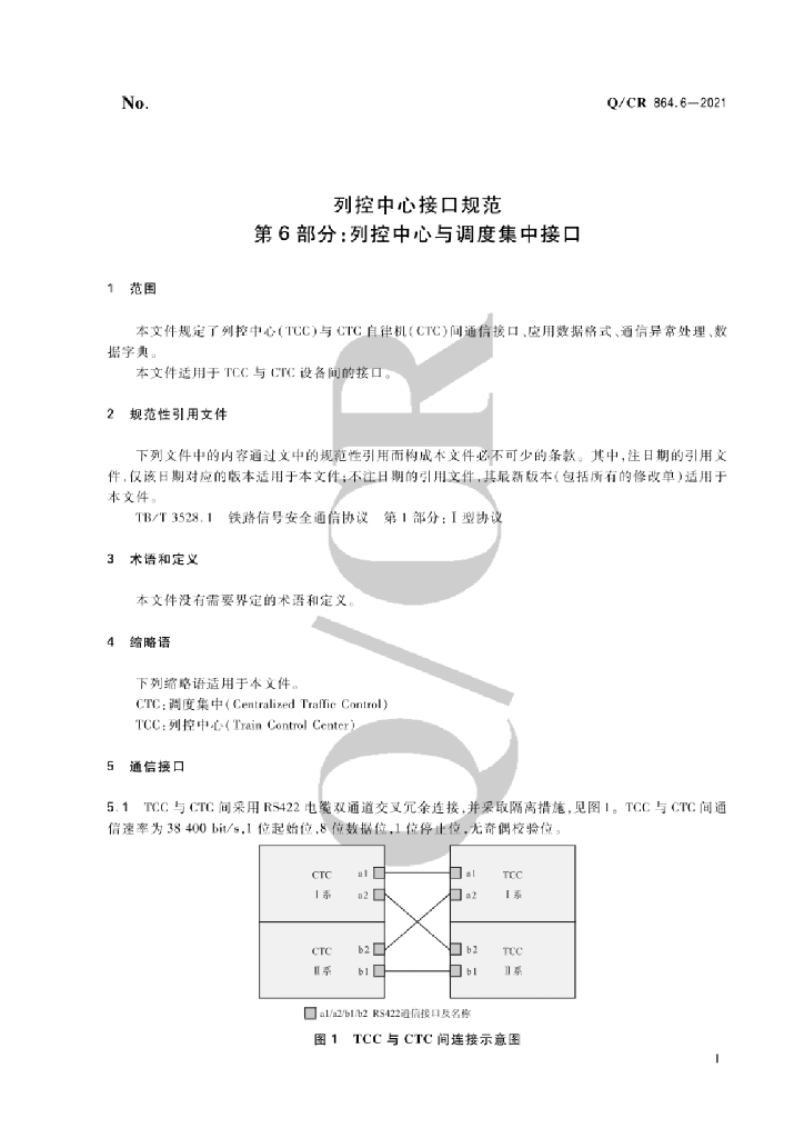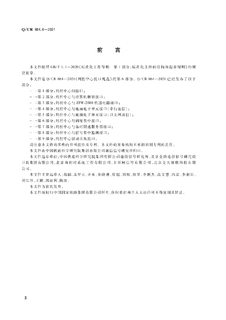 Q/CR 864.6-2021 列控中心接口规范 第6部分:列控中心与调度集中接口
