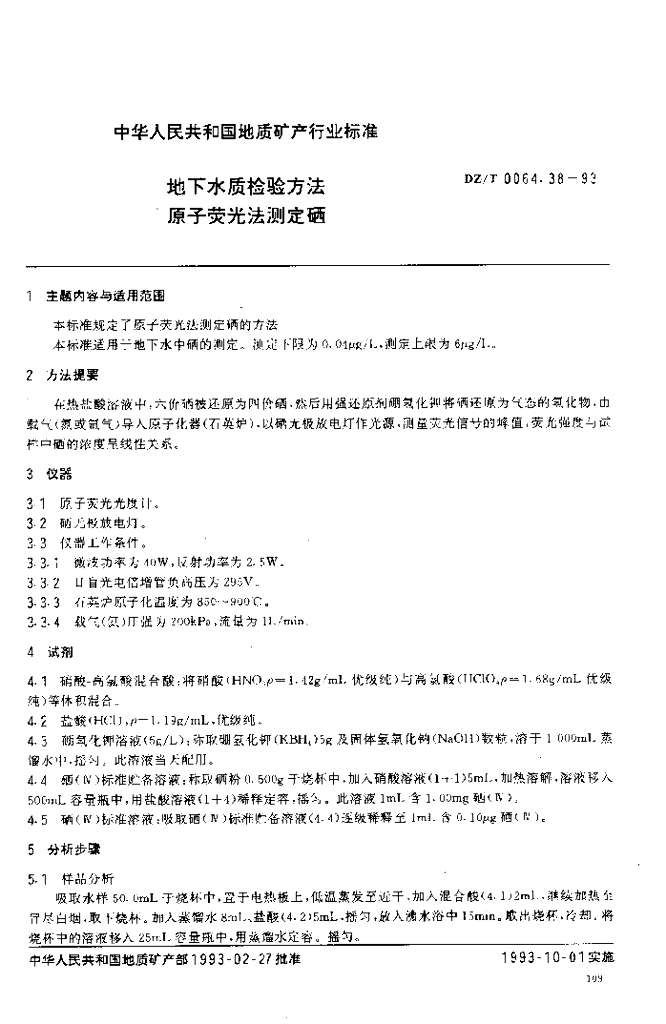 DZ/T 0064.38-2021 地下水质分析方法 第38部分:硒量的测定氢化物发生-原子荧光光谱法