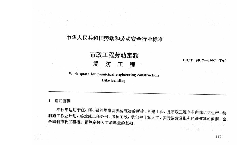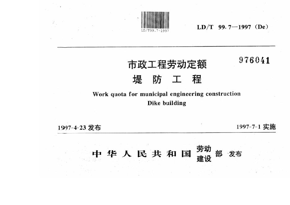 LD/T 99.7-1997 市政工程劳动定额 堤防工程