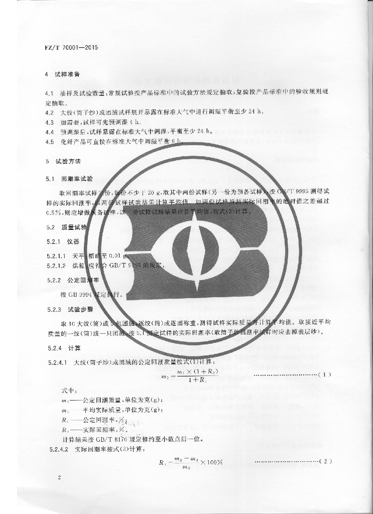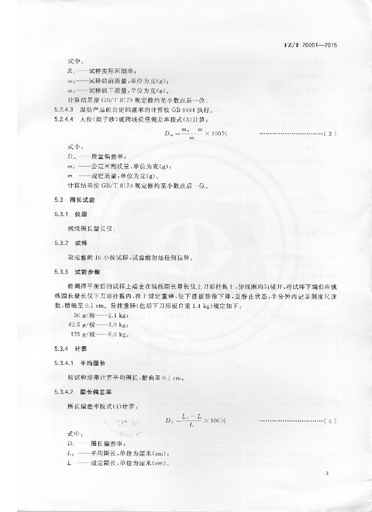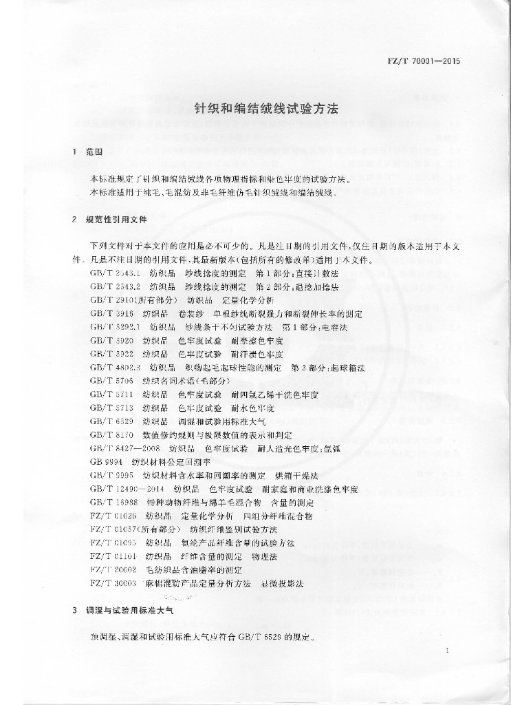 FZ/T 70001-2015 针织和编结绒线试验方法