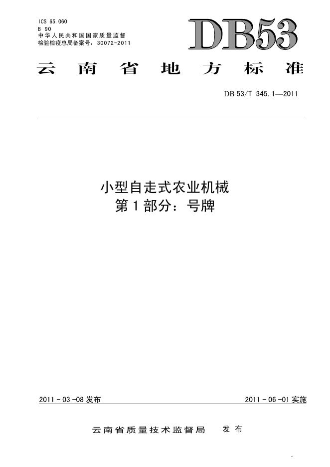 DB53/T 345.1-2011 小型自走式农业机械 第1部分:号牌