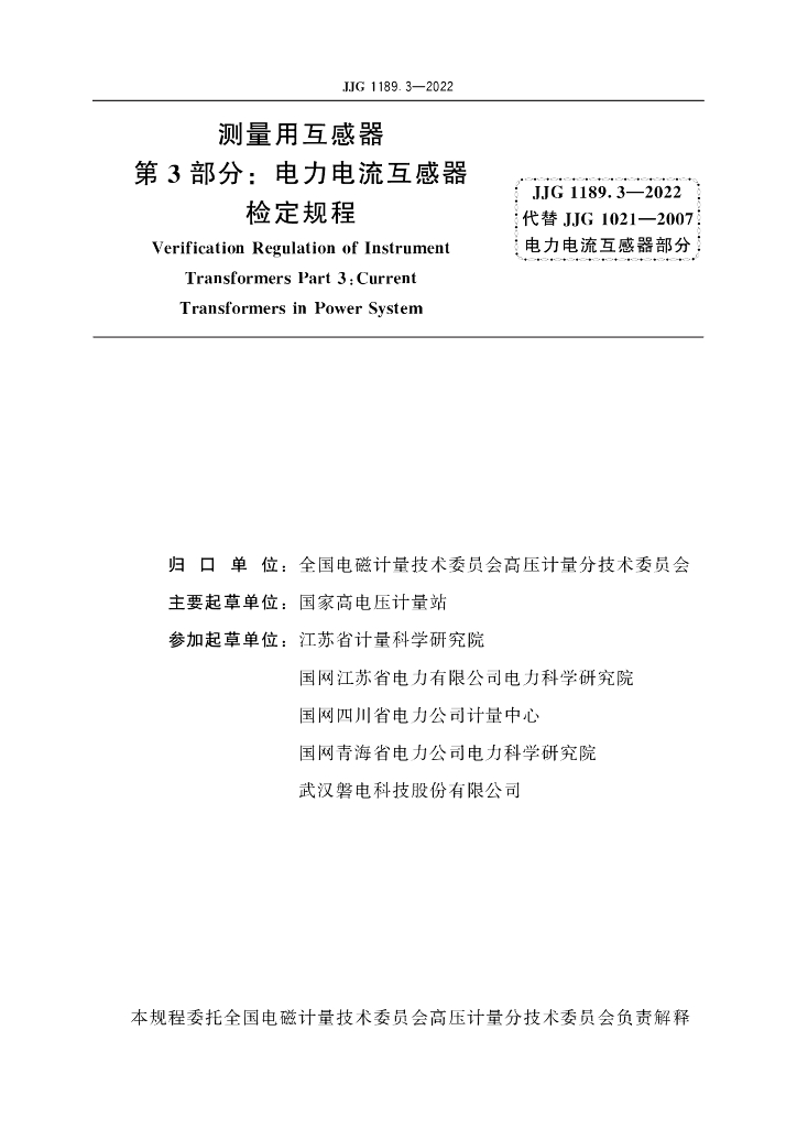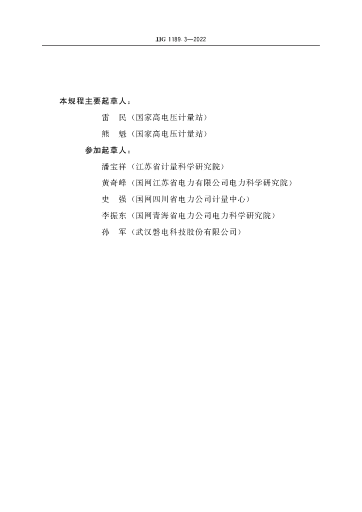 雷民(国家高电压计量站)、熊魁(国家高电压计量站)、潘宝祥(江苏省计量科学研究院)、黄奇峰(国网江苏省电力有限公司电力科学研究院)、史强(国网四川省电力公司计量中心)、李振东(国网青海省电力公司电力科学研究院)、孙军(武汉磐电科技股份有限公司)