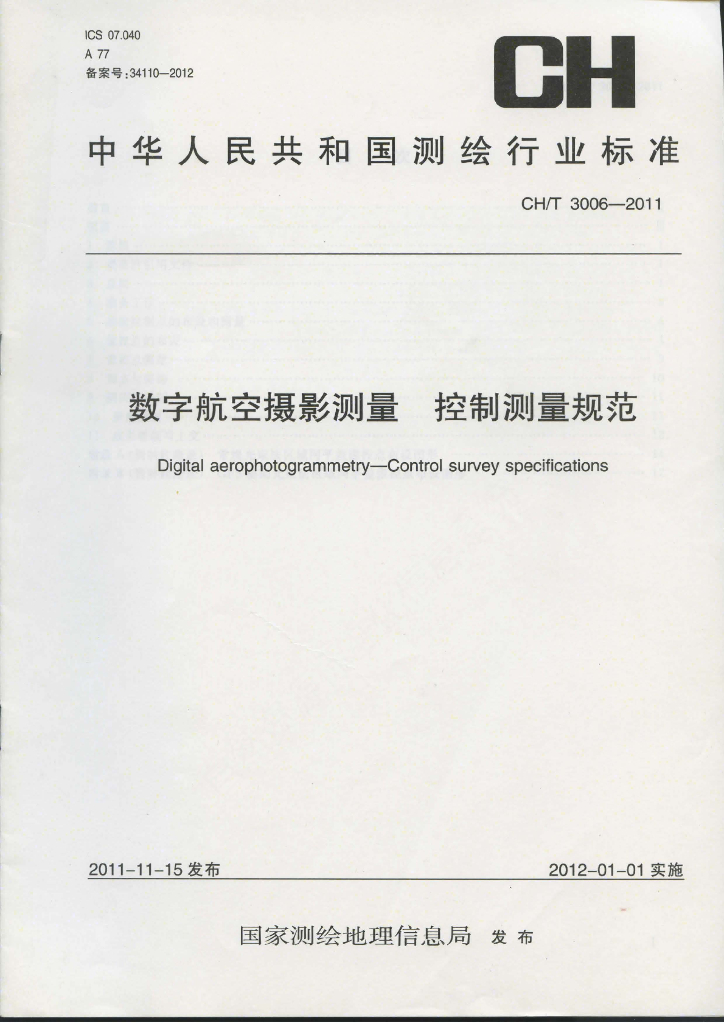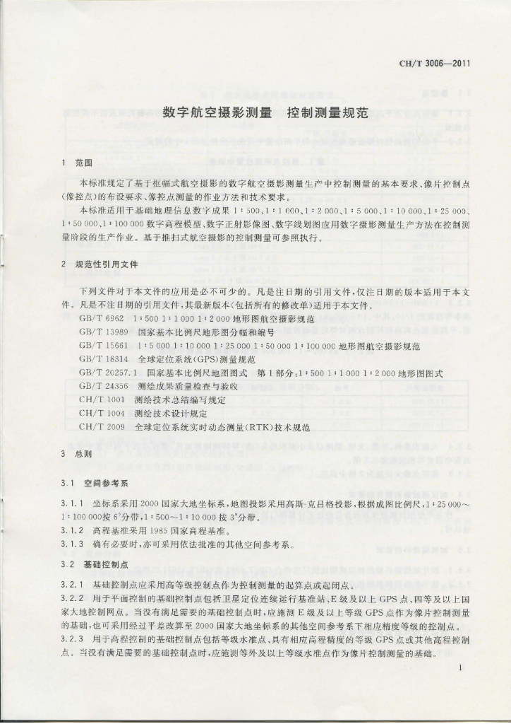 CH/T 3006-2011 数字航空摄影测量 控制测量规范