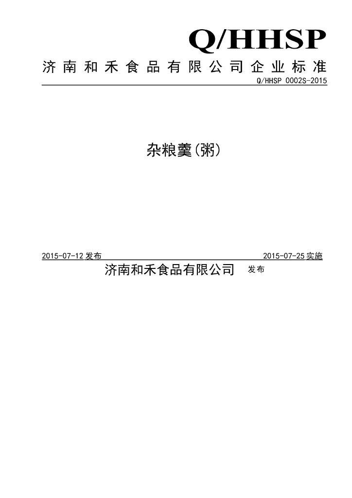 Q/HHSP 0002S-2015 济南和禾食品有限公司 杂粮羹(粥)