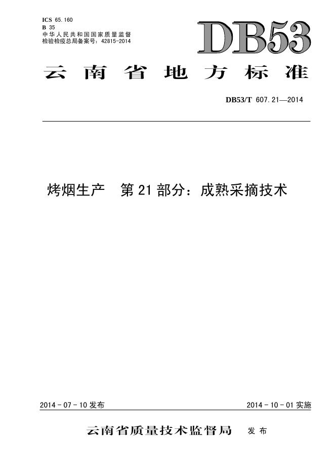 DB53/T 607.21-2014 烤烟生产 第21部分:成熟采摘技术