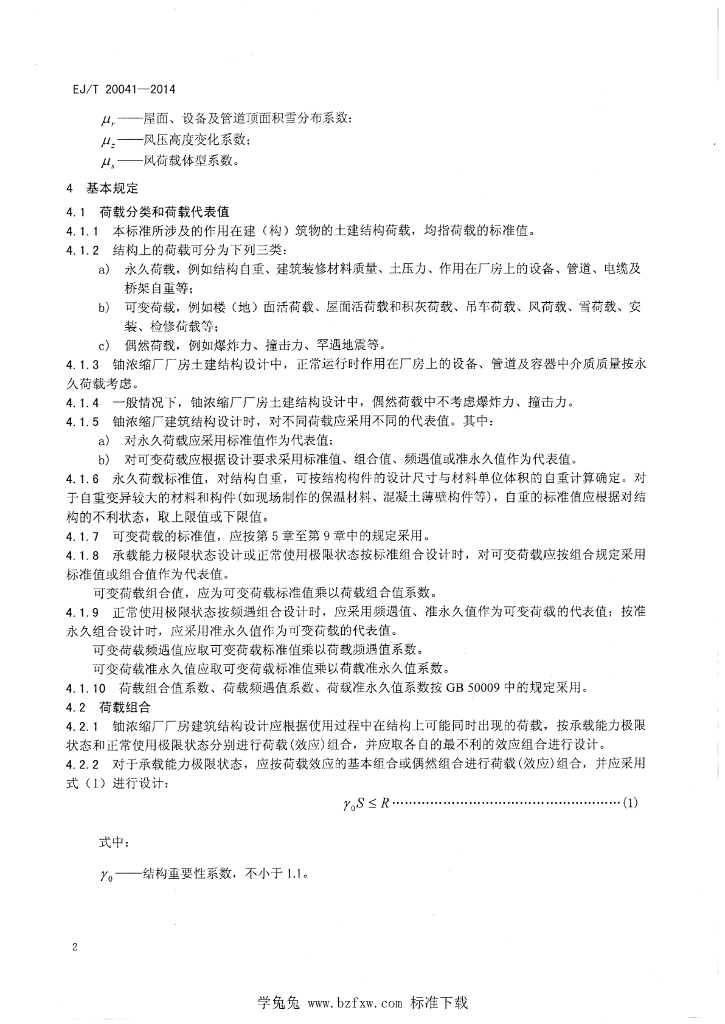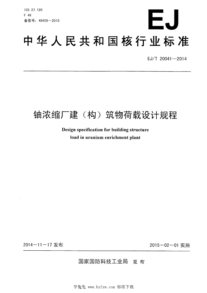 EJ/T 20041-2014 铀浓缩厂建(构)筑物荷载设计规程