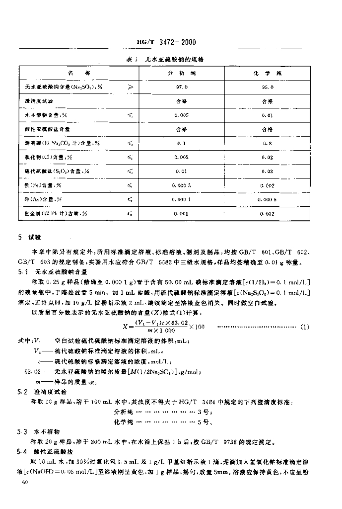 HG/T 3472-2000 化学试剂 无水亚硫酸钠