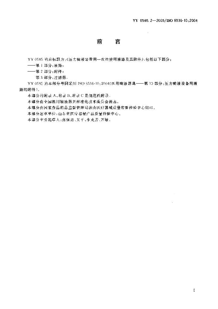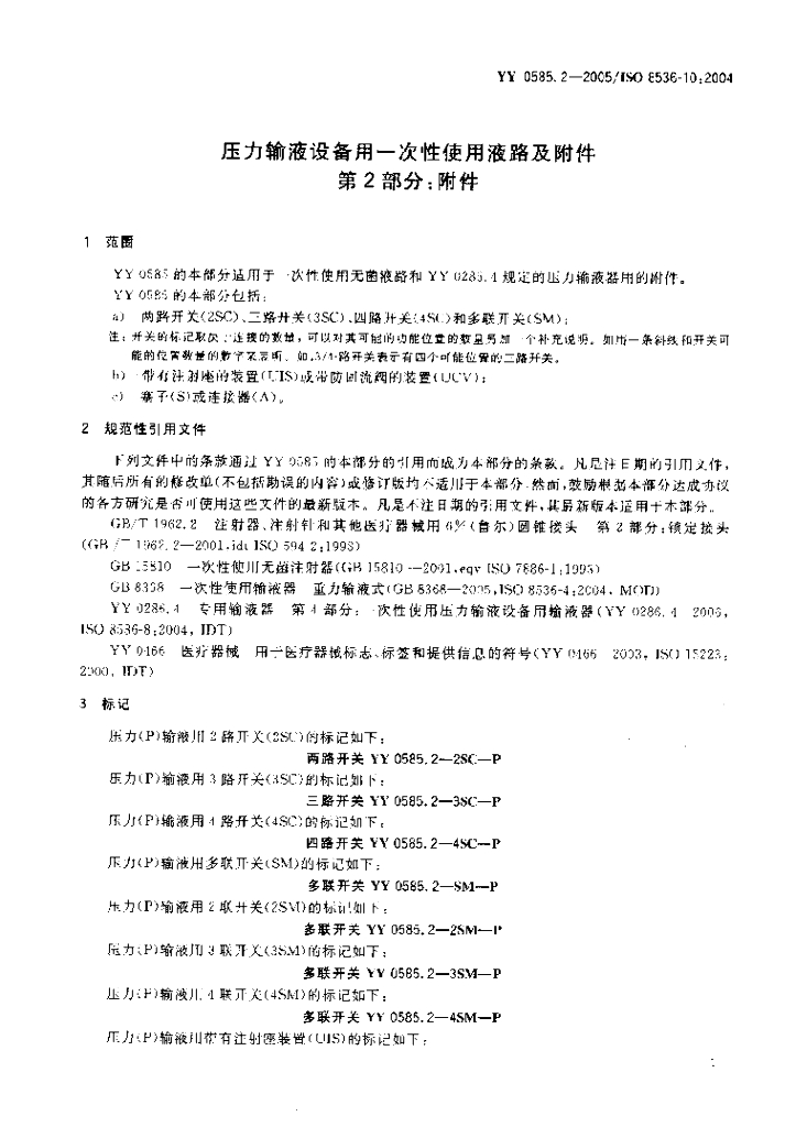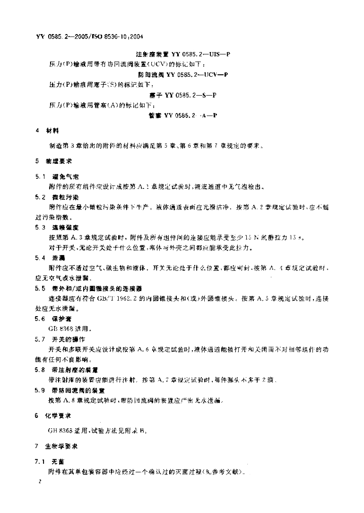 YY 0585.2-2005 压力输液设备用一次性使用液路及附件 第2部分:附件
