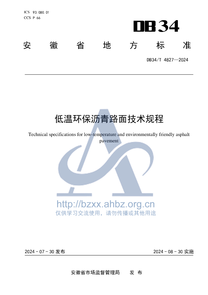 DB34/T 4827-2024 低温环保沥青路面技术规程