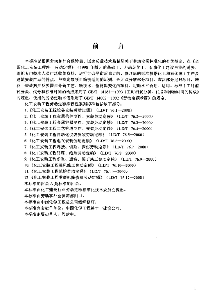 LD/T 76.4-2000 化工安装工程 工艺管道制作、安装劳动定额