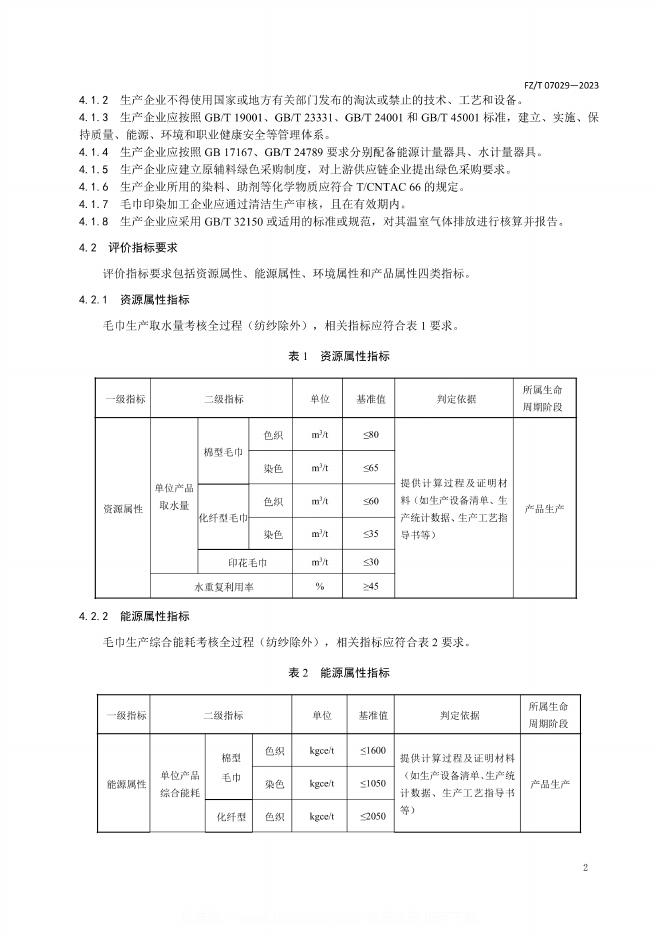 FZ/T 07029-2023 绿色设计产品评价技术规范 毛巾