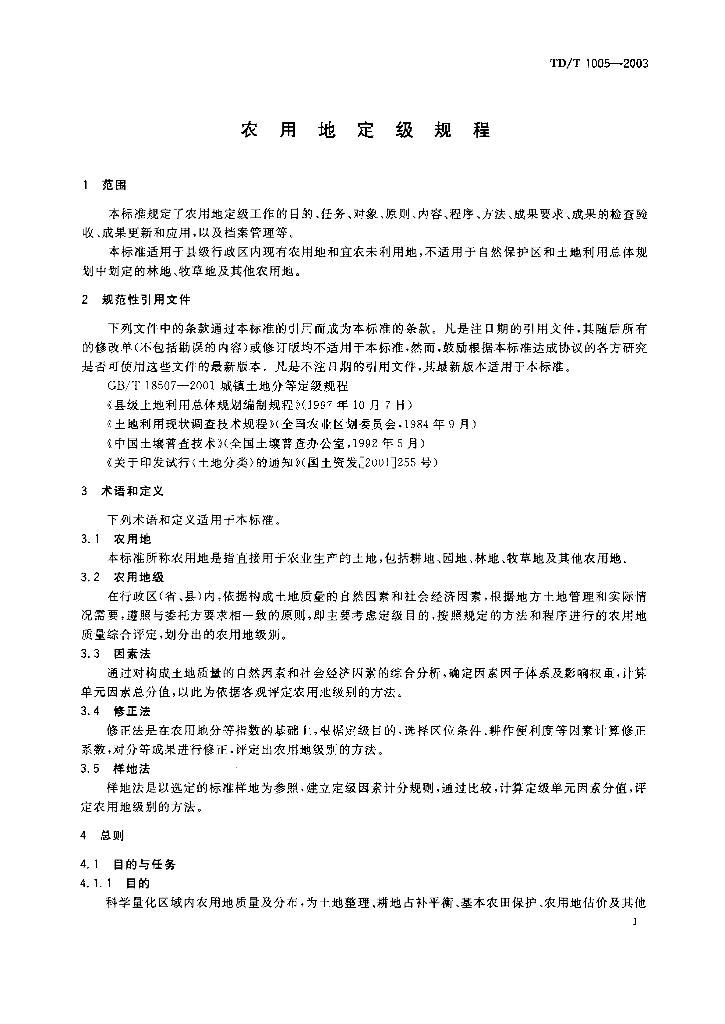 TD/T 1005-2003 农用地定级规程