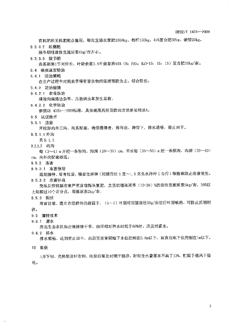 DB32/T 1431-2009 扬农啤5号啤酒大麦生产技术规程