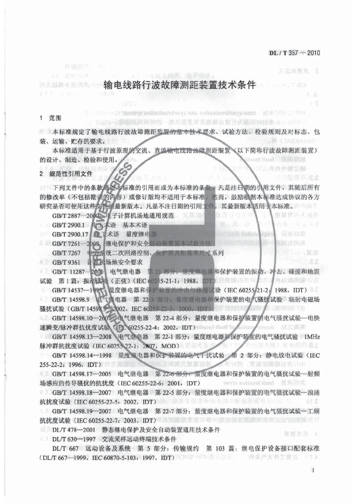 DL/T 357-2010 输电线路行波故障测距装置技术条件