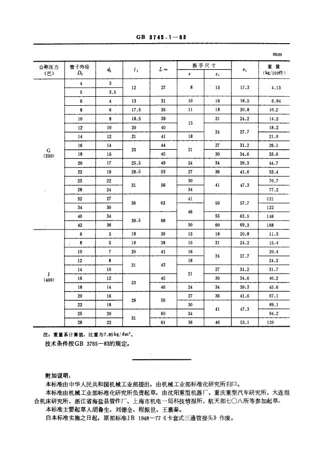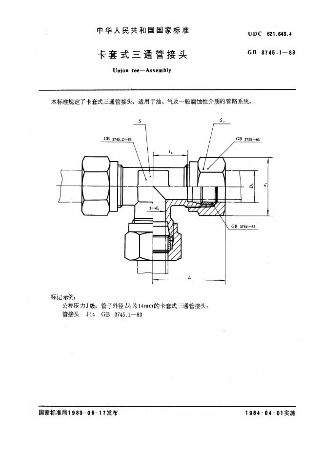 GB/T 3745.1-1983 卡套式三通管接头