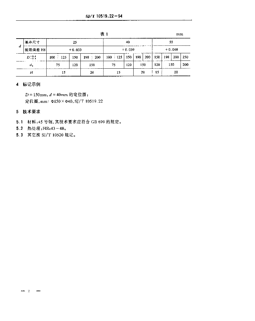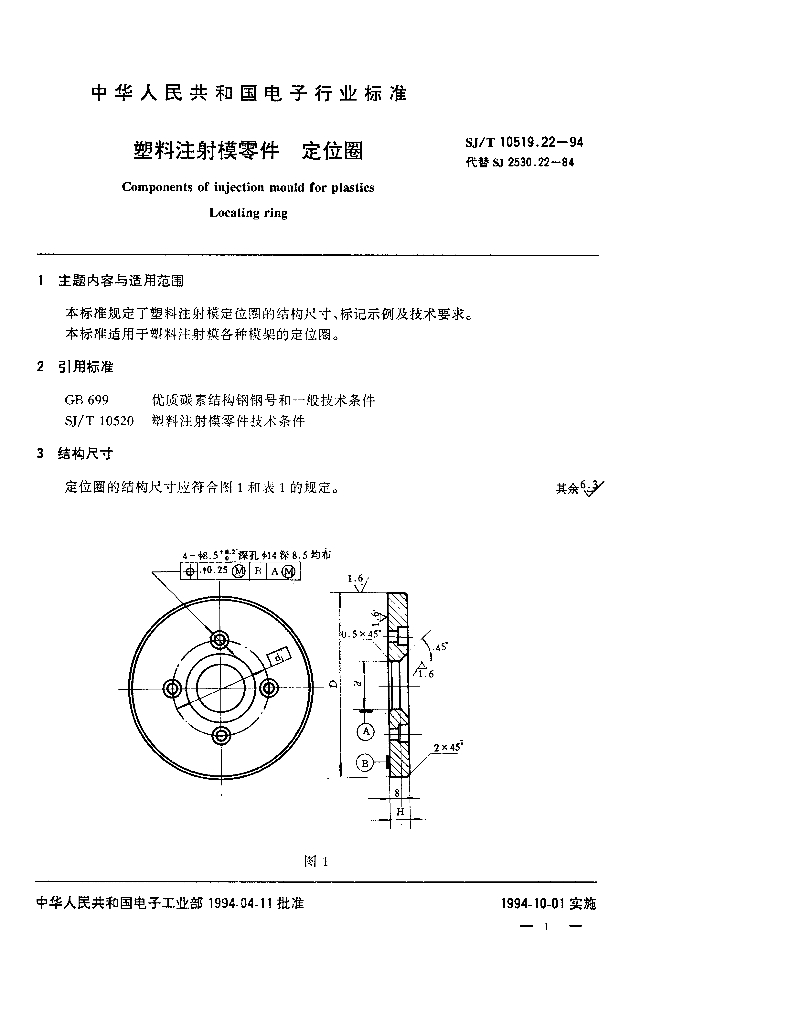 SJ/T 10519.22-1994 塑料注射模零件 定位圈