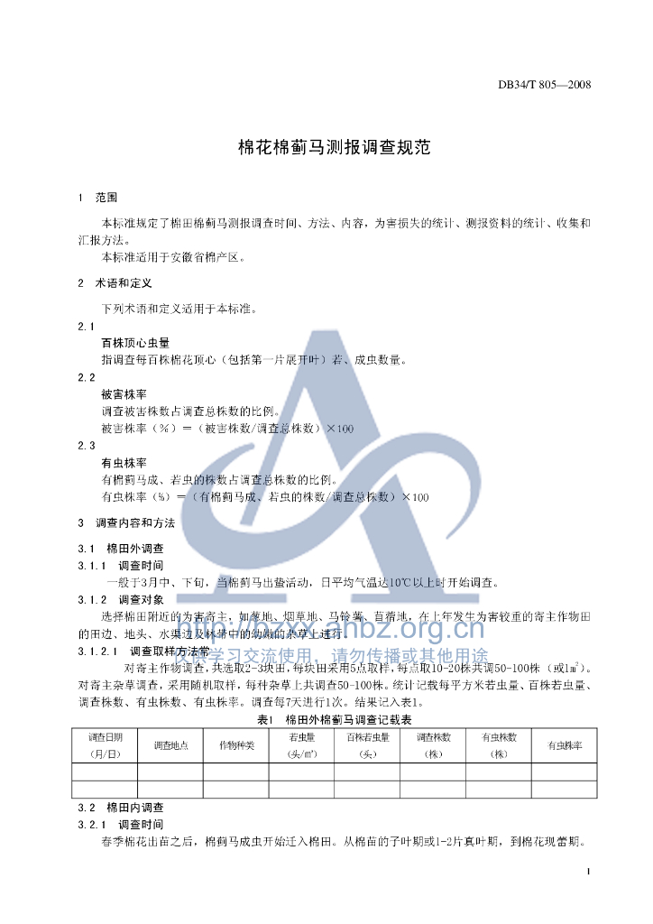 DB34/T 805-2008 棉花棉蓟马测报调查规范