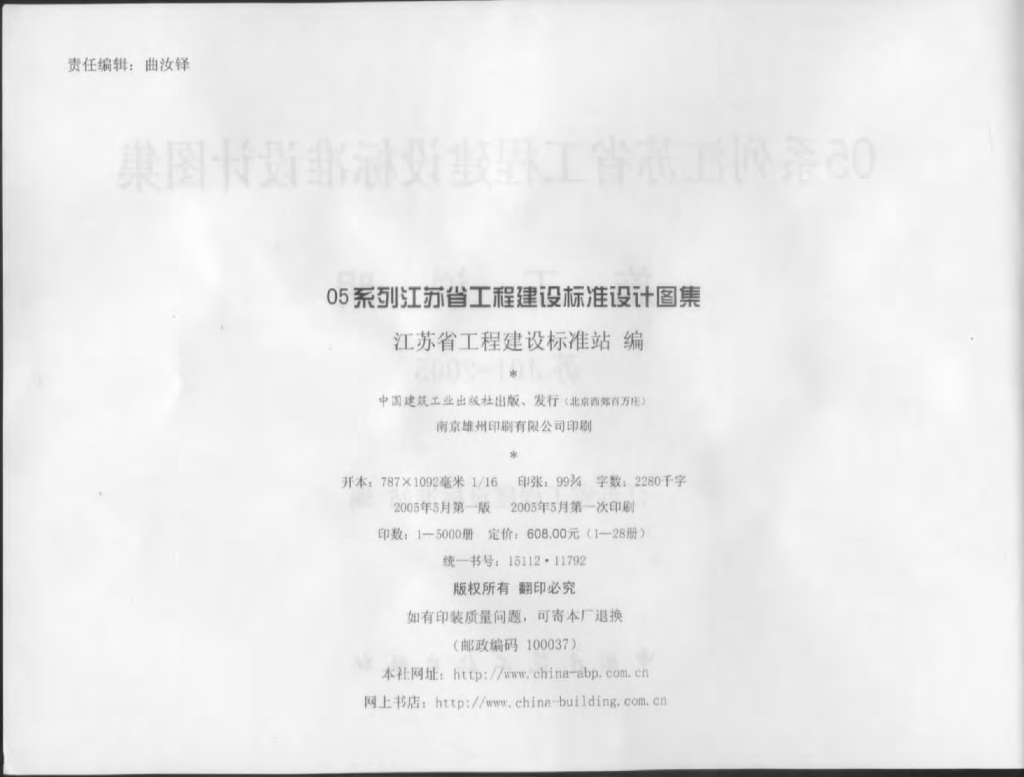 苏J01-2005 施工说明图集(江苏省建设工程标准设计05系列图集)