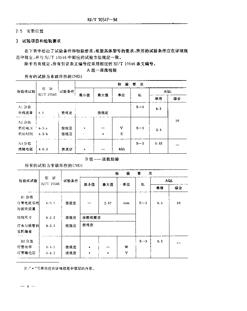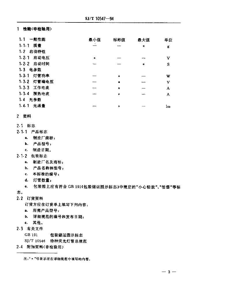 SJ/T 10547-1994 紧凑型荧光灯管空白详细规范