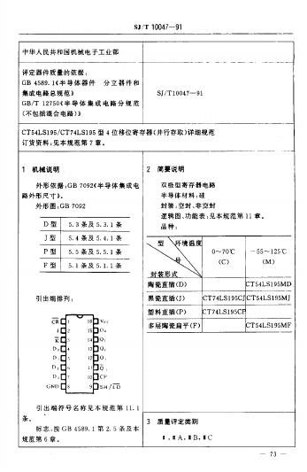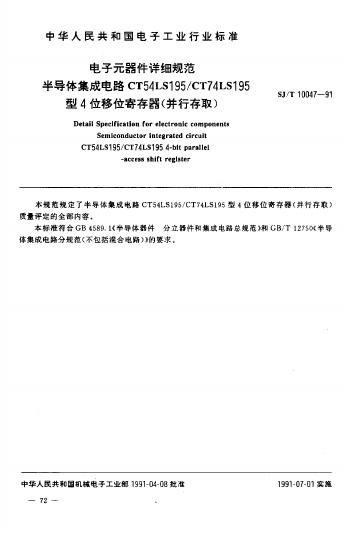 SJ/T 10047-1991 半导体集成电路CT54LC195/CT74LS195型4位移位寄存器(并行存取)