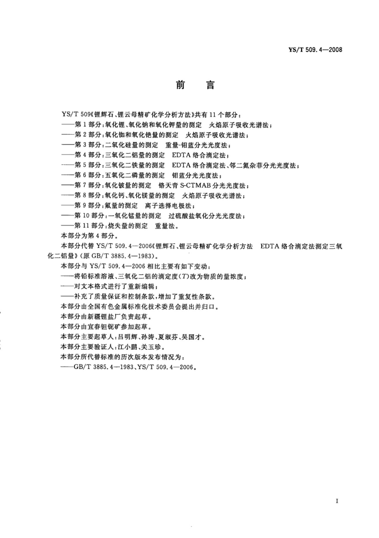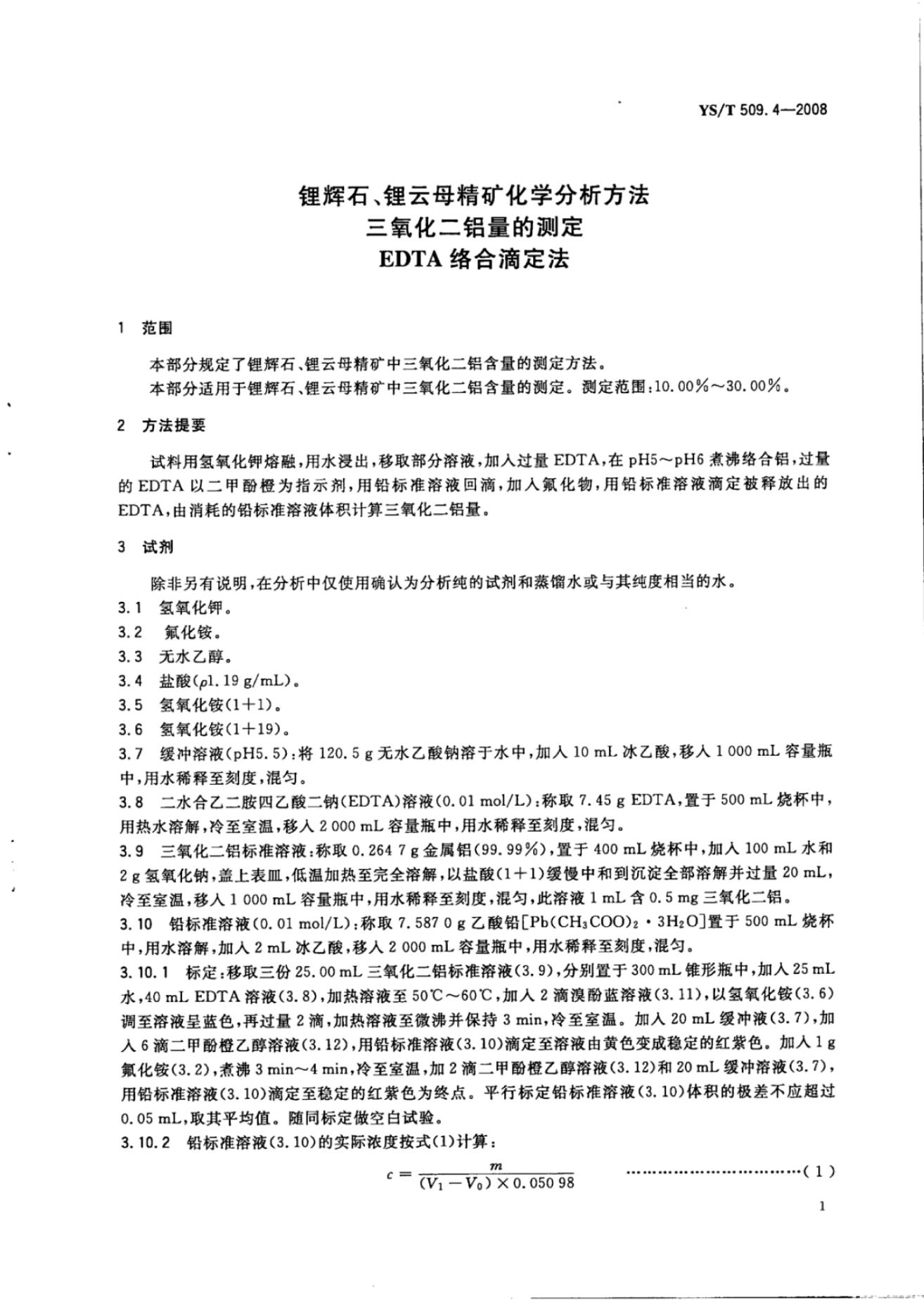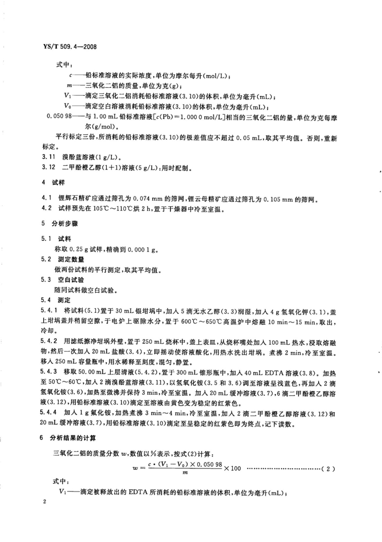 YS/T 509.4-2008 锂辉石、锂云母精矿化学分析方法三氧化二铝量的测定EDTA络合滴定法